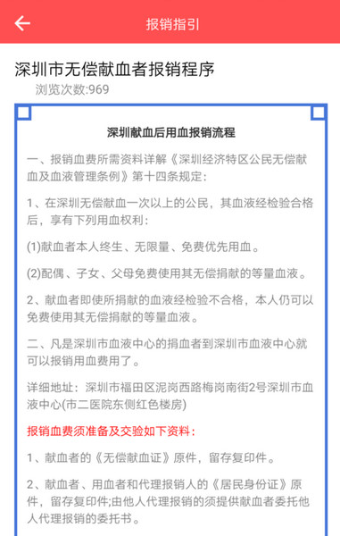 點(diǎn)擊報(bào)銷指引→在這里可以看到當(dāng)?shù)氐挠醚獔?bào)銷流程,不用再東問(wèn)西問(wèn),方便快捷的了解當(dāng)?shù)氐墨I(xiàn)血后用血報(bào)銷流程。