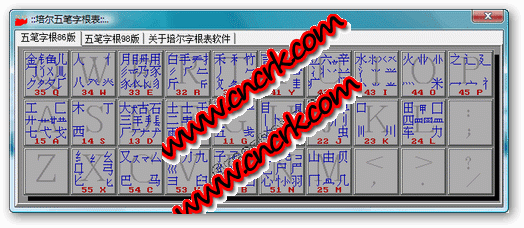本軟件完全免費使用,具有QQ的自動窗口收縮功能,方便學(xué)習(xí)五筆字型及使用五筆字型打字的人員進行字根查詢,本軟件包含五筆86、98兩種字根表??蓪崿F(xiàn)程序自啟動功能。