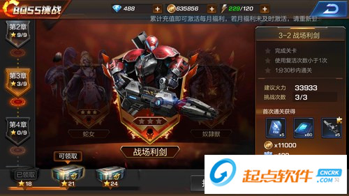 BOSS挑戰(zhàn)和組隊(duì)模式相似,都是通過(guò)闖關(guān)來(lái)獲取相應(yīng)的武器的碎片,不過(guò)不同于組隊(duì)模式獎(jiǎng)勵(lì)的隨機(jī)性,BOSS挑戰(zhàn)獲取到的獎(jiǎng)勵(lì)是固定的,是一定會(huì)有該武器的碎片,因此想要快速的獲取某把武器,可以專注的去挑戰(zhàn)BOSS挑戰(zhàn)來(lái)獲取碎片合成。
