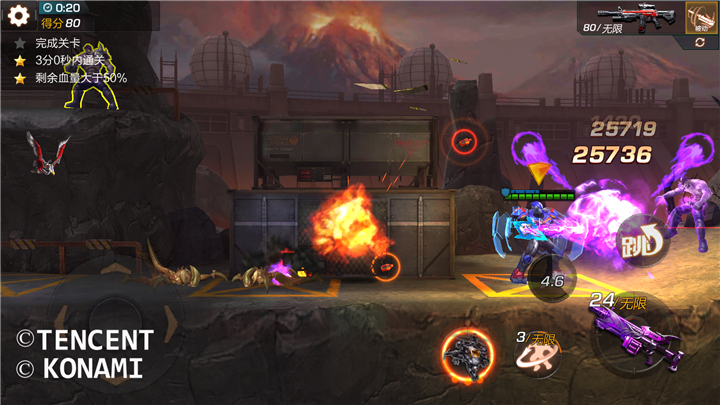 騰訊魂斗羅歸來(lái)是一款射擊類手游,還記得曾經(jīng)小霸王上的魂斗羅嗎?魂斗羅歸來(lái)完美的還原了魂斗羅,還在等什么,快點(diǎn)來(lái)回味一下童年的時(shí)光吧!