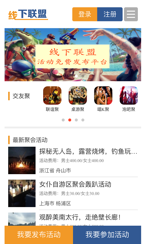 線下聯(lián)盟app是一款有關(guān)于線下聚會活動的手機聊天交友軟件,用戶可以通過軟件發(fā)布線下活動約其他人一起玩耍,還可以參加別人發(fā)布的感興趣的活動,在工余閑暇時間認(rèn)識更多有趣的優(yōu)質(zhì)朋友。