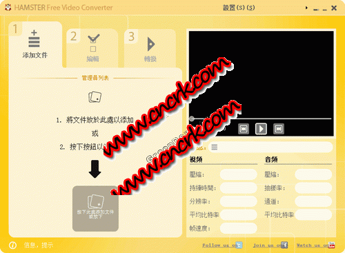 Hamster Free Video Converter(視頻轉(zhuǎn)換軟件) V3.0.0.0 多國(guó)語言官方安裝版 Hamster Free Video Converter是一個(gè)新的輝煌免費(fèi)視頻轉(zhuǎn)換軟件,變成有趣的視頻轉(zhuǎn)換。支持MPEG,AVI,FLV,WMV,3GP,XVID,DIVX,MKV,M2TS。你可以轉(zhuǎn)換任何視頻,如DVD播放器,iPod,iPhone,ipad公司,愛可視,Zune播放器,PSP的,HTC宏達(dá)電,或諾基亞視頻。