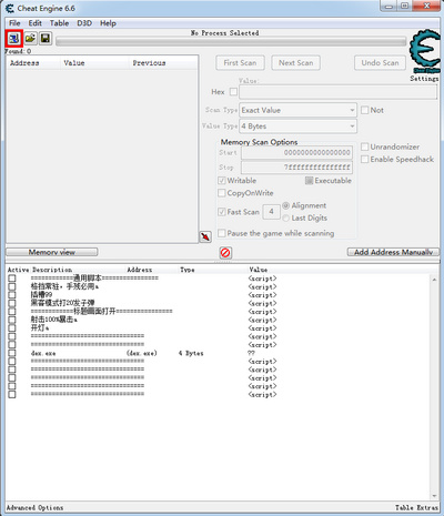 然后下方狀態(tài)欄就會出現(xiàn)CT文件的內(nèi)容,也就是修改器的功能了