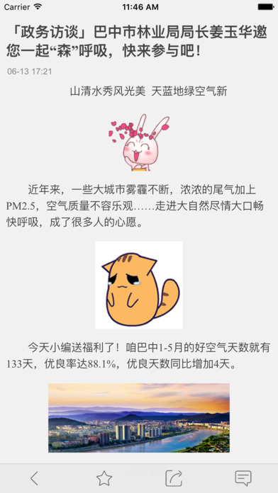 1、特色內(nèi)容,及時更新。第一時間向廣大用戶傳遞本地?zé)狳c新聞,全力打造巴中本地權(quán)威的新聞及生活資訊服務(wù)平臺;