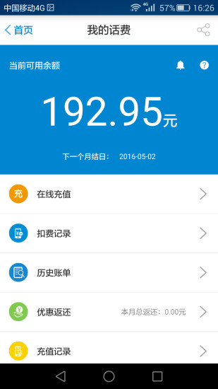 4.在我的移動頁面,您可以查看您的話費,流量,積分和已辦的業(yè)務(wù)等