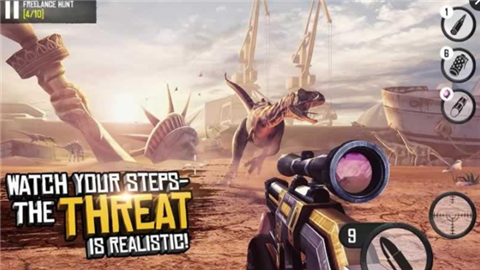 《獵殺恐龍3D Best Sniper》是一款有趣的射擊游戲,游戲里玩家需要化身為一名恐龍獵人,使用手中的狙擊槍獵殺各種兇狠的恐龍。小心!如果沒有使用手中的武器將恐龍一擊斃命的話,玩家很可能就會(huì)變成恐龍的盤中餐,感興趣的話就快來下載吧!