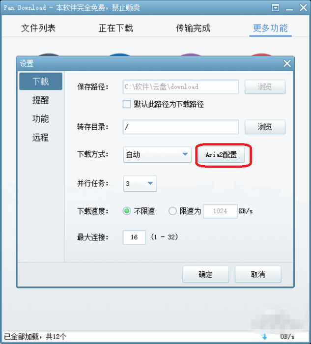 打開設(shè)置->下載->下載方式->Aria2配置->填上以下參數(shù)確定!
