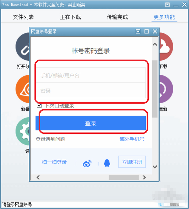 1、打開軟件,輸入百度網(wǎng)盤賬號密碼登錄