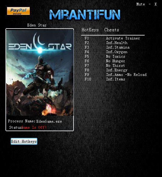 伊甸之星 v0.2.8.30317十項修改器[MrAntiFun];由MrAntiFun制作分享,適用于0.2.8.30317版本,修改十項屬性。【功能介紹】
