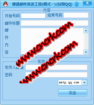 E-Mail便捷發(fā)送工具可以單發(fā)和群發(fā)郵件,方便快捷?。?! E-Mail便捷發(fā)送工具只限制發(fā)送文本格式?。。?群發(fā)只限制QQ郵箱,其他郵箱暫時只有單發(fā)支持!