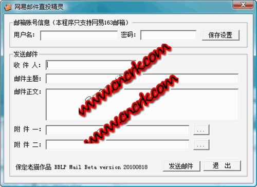 這是一個(gè)利用網(wǎng)易163郵箱,由本地計(jì)算機(jī)發(fā)送電子郵件的一個(gè)程序,這個(gè)程序免去了頻繁登陸網(wǎng)易郵箱頁(yè)面的過(guò)程,大大減輕了發(fā)送郵件的工作強(qiáng)度。