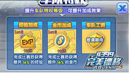 3、加入車隊,每場比賽還能獲得車隊經(jīng)驗加成,車隊等級越高可獲得的經(jīng)驗加成越多哦!