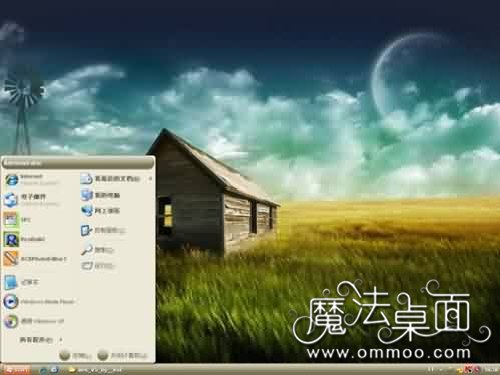一望無際的草地,精致的木屋,晴朗的夜空,美麗的圓月,這是一個完美的主題