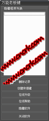 1、Ctrl+R 隱藏列表中的程序 2、Ctrl+E 顯示列表中的程序 3、Ctrl+Alt+R 顯示軟件 4、按住Ctrl鍵并在某個程序的標(biāo)題上點擊左鍵,便可以把程序列入隱藏列表。