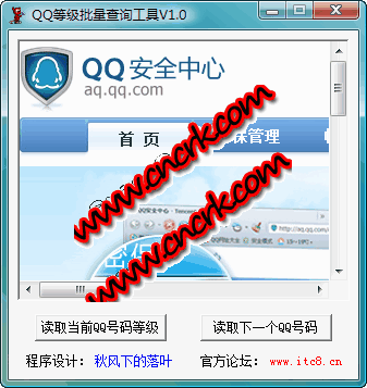 然后啟動程序,程序啟動后自動輸入第一個QQ號碼及密碼,手動輸入驗證碼,點擊“獲取當前QQ號碼等級”后,點擊“讀取下一個QQ號碼”,然后輸入驗證碼...如此循環(huán)...直到程序提示“號碼等級檢測完畢!”。所有號碼等級將保存到目錄下的out.txt文件里。