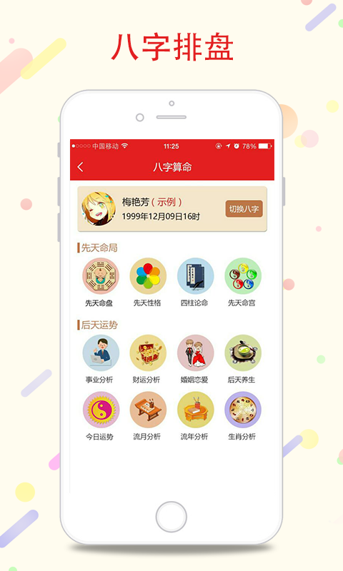 【八字算命】:八字算命把總計(jì)52萬左右個(gè)八字命局排盤細(xì)化到分鐘,使用大數(shù)據(jù)云存儲(chǔ)記載每個(gè)用戶提交的八字案例,方便歸類查詢學(xué)習(xí)。