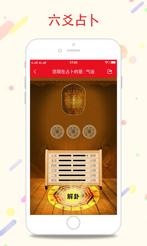 【六爻算卦】:六爻搖卦界面精美,裝卦準(zhǔn)確無誤,方便易用,云存儲(chǔ)記錄,方便愛好者歸類查詢學(xué)習(xí)。