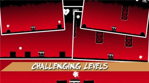 游戲設(shè)置有多個(gè)關(guān)卡,多種不同的障礙等待玩家去克服。點(diǎn)擊屏幕的左右側(cè)分別可以控制角色前進(jìn)跳躍。