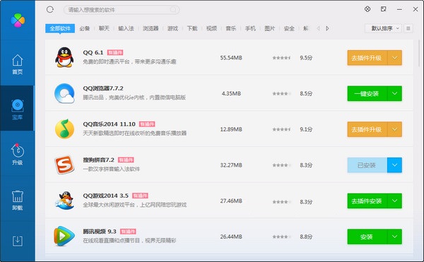 1.省時省力:電腦上的常用精品軟件,只需要按一下按鍵,就可以自動的快速從網(wǎng)上下載、安裝你要的軟件的最新、最穩(wěn)定的版本,整個過程不需要進行額外操作,快捷安全。2.易于管理:安裝、升級、卸載、運行,自在掌握。使用QQ軟件管理可以及時獲得最新軟件的推薦消息,并方便、快捷的進行安裝、升級、卸載,已經(jīng)安裝的軟件可以更容易找到并運行。