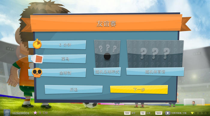 【畫面】:畫面卡通小清新,看起來特別舒服。【音樂】:選擇界面的音樂很喜感,因?yàn)槁犉饋砗芟癯壗职?菜單的音樂什么鬼...踢球時(shí)候基本沒什么音樂(好像也沒什么不對的,足球游戲踢球都沒音樂才對吧)