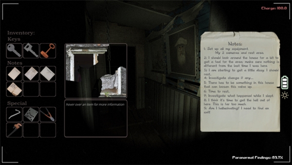 三個(gè)女孩在家中被殘忍地殺害,警方稱之為“發(fā)生在本市最暴力的犯罪”。年輕的安娜,16歲,對(duì)所發(fā)生的事情很感興趣,并決定調(diào)查的房子。在到達(dá)廢棄的舊房后安娜設(shè)置了兩個(gè)相機(jī),并開(kāi)始調(diào)查這里,希望收集可能證明一些重要的數(shù)據(jù)。【游戲特色】