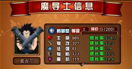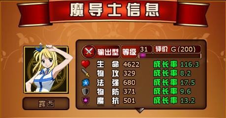如圖。我們召喚的英雄在這里叫做魔導士,所以回到游戲主界面,點擊魔導士,可以對英雄進行升級,升階,裝備強化等等。如圖2,選擇一個英雄。