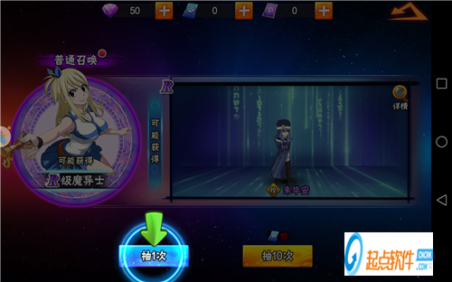 如圖。這款游戲是一個卡牌類的游戲,召喚是主要玩法,也是很多玩家的樂趣。與其他游戲沒區(qū)別的是,召喚還是分成:普通和高級召喚,召喚高級英雄的概率也不同。
