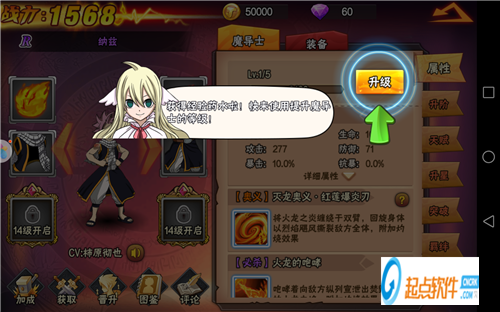 如圖。點擊進去后,就可以直接看到升級升階按鈕,正常操作就可以了。升級升階可以提高,魔導士戰(zhàn)斗力。
