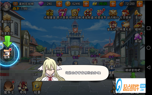 如圖。在后面,系統(tǒng)會給我們開放任務系統(tǒng),點擊任務就可以,做任務可以獲取財富和道具。