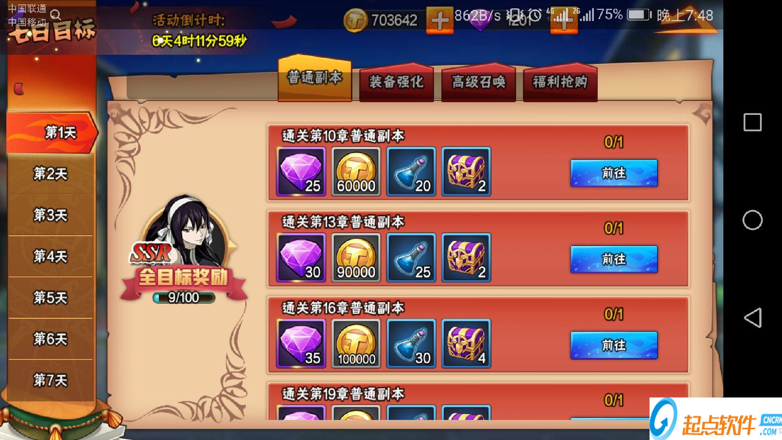 1:七日目標:人物達到一定的等級就可以開啟七日目標活動,每天的目標都是不同的,只要在活動時間內完成就可以領取獎勵,每完成目標都可以獲得鉆石和游戲資源