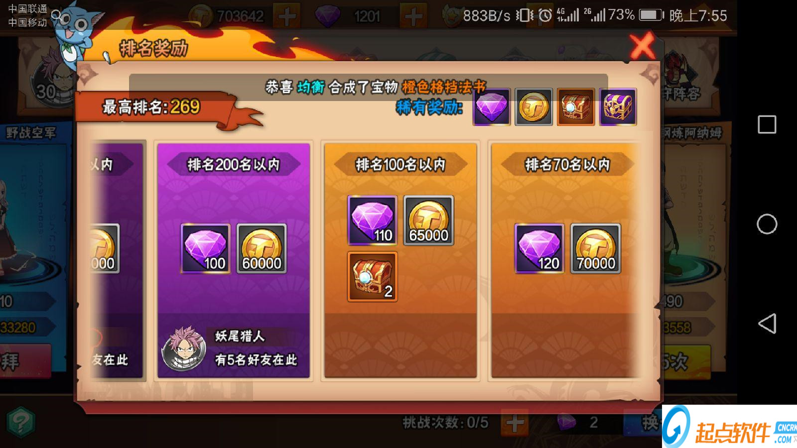 3:競技場獎勵:玩家每達成一定的排名就可以領取排名獎勵,排名越高獎勵越豐富,每次都可以領取大量的鉆石和金幣獎勵。