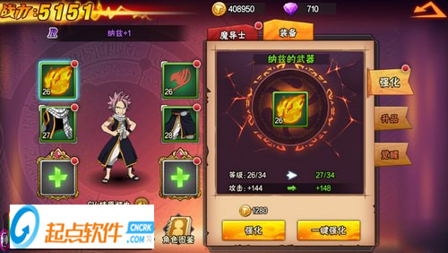 裝備強化可以提升裝備屬性 附加在人物角色身上 在前期每級的武器強化會提升20點攻擊屬性加成 裝備強化的界限是主角當前等級的2倍 也就是說你現(xiàn)在10級 裝備最高只能強化到20級 每提升一級主角等級 裝備等級強化提升2級。