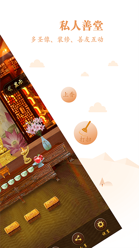 (1)善堂全新改版:個性化定制裝修,多圣像選擇供養(yǎng),進入善友善堂打掃互動等