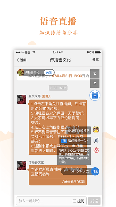 (2)新增善學堂:傳統(tǒng)文化領域首個在線知識分享互動社區(qū),通過直播的形式直接找到各領域的專家