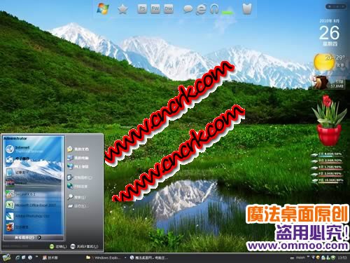 魔法桌面原創(chuàng)玉龍雪山盛夏電腦桌面主題,雪山點(diǎn)綴了整幅畫卷。玉龍雪山憑其迷人的景觀、神秘的傳說和至今尚是無人征服的處女峰而令人心馳神往。整款主題以綠色為主,很適合在夏末使用。