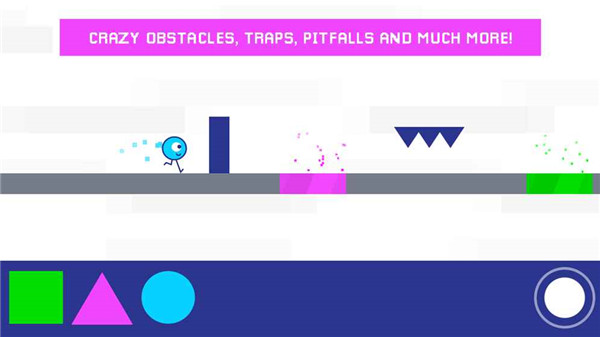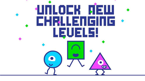 《三角方塊圓》游戲中玩家需要控制3種圖形來(lái)不斷前進(jìn),運(yùn)用圖形的特殊能力來(lái)躲避障礙。方塊的獨(dú)特力量(粉碎!),三角形(跳躍!)和圓(滾!)來(lái)贏得這場(chǎng)不可思議的比賽。