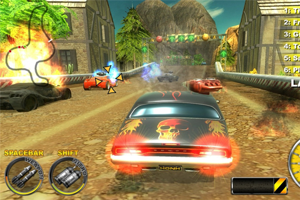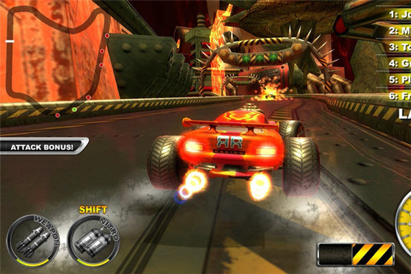 你將參與激烈的比賽充滿(mǎn)爆炸,槍聲和危險(xiǎn)的障礙的軌道上。你必須通過(guò)25個(gè)不同的路線(在海灘上,熔巖上,在沙漠中),與不同的車(chē)手競(jìng)爭(zhēng)。每一個(gè)關(guān)卡中,你都會(huì)收到來(lái)自你的對(duì)手的信息,并邀請(qǐng)你參加比賽。