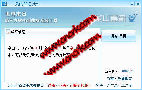 第三方軟件庫文件(dll)漏洞會造成windows被攻擊,金山毒霸發(fā)布該工具可以使系統(tǒng)免遭蓄意制造的dll文件攻擊。
