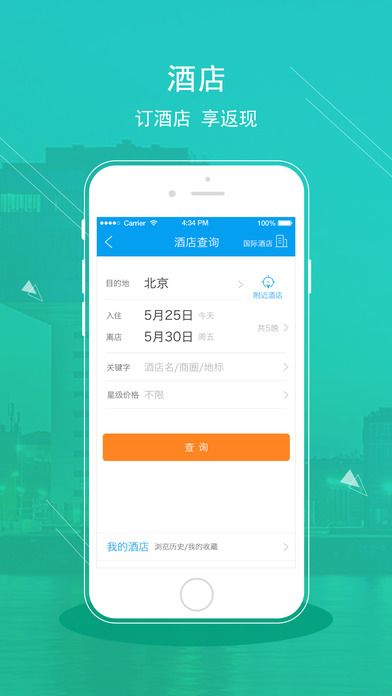 國內600+主要城市的20000多家酒店查詢和預訂,上千家高星級酒店預付直減,最高節(jié)省955元/間夜,預訂酒店返現最高220元/間夜;