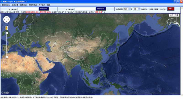 google map截獲器最大的特色是簡(jiǎn)單方便,易用,坐標(biāo)精確,海量下載,無(wú)任何使用限制。不僅適用于GIS、導(dǎo)航、測(cè)繪行業(yè),還可用于個(gè)人旅游,地圖觀(guān)賞等。本軟件拼出的圖像的坐標(biāo)精度很高,可滿(mǎn)足專(zhuān)業(yè)需求。