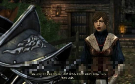 進(jìn)到村鎮(zhèn),看到一名叫Edain的少女和鎮(zhèn)長(zhǎng)在說話。這名少女見到主角,一臉的不高興,還沒等主角詢問,就一句話給否定掉,這火暴脾氣。