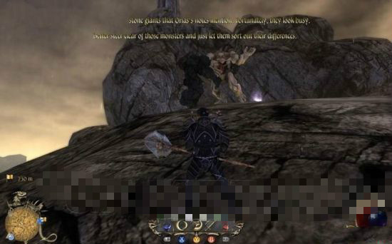 在山道上遇到兩只戰(zhàn)斗的石巨人,不用理會(huì)它們,沿著山道繼續(xù)走。