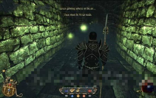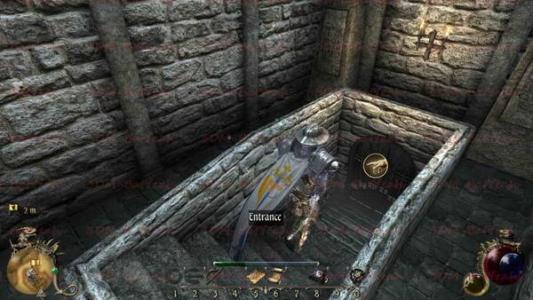 往地圖的西北方行進(jìn),在石壁上找到一道門,用歐利昂的石鑰匙打開它,穿行到另一邊。