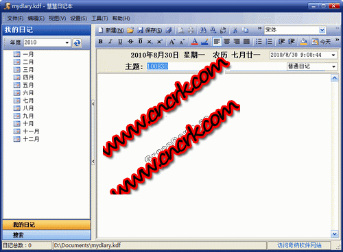 慧慧日記本是一款簡潔易用的電子日記本。它在傳統(tǒng)日記本以天天記錄筆 記的開發(fā)原則上,再實現(xiàn)了日記的打印、加密(保護個人隱私)等功能,軟件 同時支持多種格式的快速導(dǎo)入和導(dǎo)出操作。 慧慧日記本是以日期為排列順序的筆記,既方便查看也方便用戶進行科學(xué) 管理,再加上軟件本身專屬的搜索功能,可以快速準(zhǔn)確的找到想要的內(nèi)容。另 外,日記還增加了多功能編輯器,可以隨心所欲,圖文并茂的記錄生活、工作 、情感上的點點滴滴,擁有慧慧日記本使您的日記不再只有單一的筆墨表達