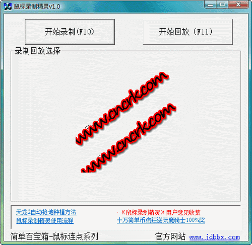 鼠標錄制精靈記錄鼠標操作路徑的一款工具,在玩游戲的時候,錄制一遍你要重復進行的任務的操作流程,點擊回放就可以自動操作,一心多用,鼠標不再被束縛。支持大部分網(wǎng)絡游戲,還有更多功能大家多多探索哦