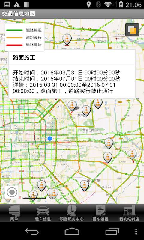 3、路況信息:查看當(dāng)前道路擁堵情況、通行情況、一般交通事件、城市限行信息。根據(jù)預(yù)測路況推薦路線,預(yù)測到達(dá)時(shí)間并設(shè)置定時(shí)提醒。