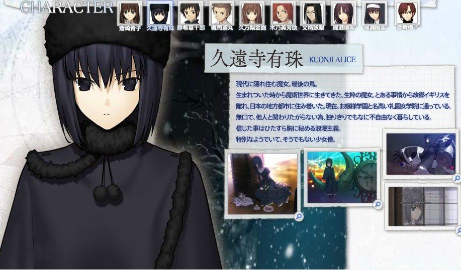 隱居于現(xiàn)代的魔女,最后之鳥(niǎo)。是一位打從出生時(shí)已經(jīng)一直活在魔術(shù)世界之中的純正魔女。因?yàn)槟硞€(gè)緣故而離開(kāi)了故鄉(xiāng)的英國(guó),到達(dá)日本的地方小城市內(nèi)居住?,F(xiàn)時(shí)她在知名的千金小姐學(xué)園禮園女學(xué)院中上學(xué)。為人沉默寡言,雖然為了不與任何其他人有關(guān)系,而獨(dú)自一個(gè)人居住,但是生活上并沒(méi)有因此而有任何不自在。對(duì)于自己相信的事會(huì)埋藏在心底中的浪漫主義。是個(gè)看上去好像有點(diǎn)特別,但其實(shí)又不是那樣的女孩子。