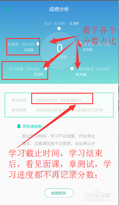 確認時間后學生就可以安心的學生課程了,要在期末考試前將所有視頻,見面課,章測試完成,免的影響到自己學分;