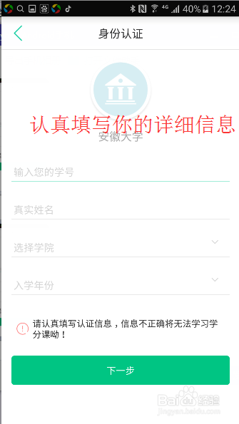 如果沒有認證用戶,會引導你進行認證,請認真填寫自己的學號,姓名,班級,入學年份;