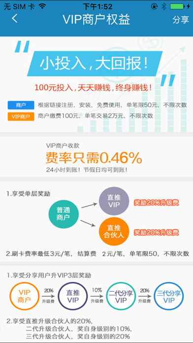 實(shí)付通商戶便捷收款平臺(tái),采用VIP商戶眾籌分紅制,首創(chuàng)全新盈利模式,保障合作伙伴持續(xù)盈利,商戶獲得分享收益,實(shí)現(xiàn)平臺(tái)穩(wěn)定持續(xù)、創(chuàng)新發(fā)展。